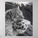 Uma bela imagem de perto de um leopardo-da-neve com olhos azuis de gelo olhando sobre o ombro dela para você. Disponível em todos os tamanhos e superfícies