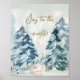 Maravilha de inverno mágica "Joy to the world" com Woodland Animal cercado com árvores de Natal na neve. Pintura por aquarela. Azul de inverno, verde e branco.