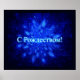 Um enxame de flocos de neve fractais azuis. "S Rozhdestvom" (Uma saudação de Natal russa) aparece em azul e branco brilhantes.