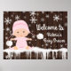 Chá de fraldas com um poster cor-de-neve rosa, com uma adorável menina a vestir uma roupa cor-de-rosa de neve numa madeira rústica e fundo com floco de neve. Basta adicionar seus detalhes e conselho de poster à parte traseira e sentar-se em um suporte ou sola.