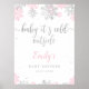 Poster de sinal de boas-vindas do chá de fraldas moderno, com os motivos dos flocos de neve cor-de-rosa e prata de inverno, com o texto "Querida, está frio lá fora"