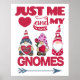 Só eu e os meus gnomos, este design bonito apresenta três gnomos em branco e azul vermelho com texto dizendo "Eu e os meus gnomos".