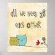 desenho bonito de duas corujas sentadas num galho com a palavra "tudo que precisamos é um do outro"