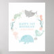 Esta tapeçaria de aniversário temida por um animal do mar apresenta uma baleia, tubarão-tigre, geleia, tartaruga-do-mar, nadando em círculo.