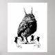 Você tropeçou em uma cena misteriosa e mágica. Ratos florestais dançam e cavoram ao redor da figura estática de uma coruja corada. Esta é uma impressão de uma caneta e desenho de tinta originais em preto e branco. O desenho está no estilo de uma ilustração clássica do livro.
