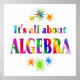Compartilhe a importância da álgebra em nossas vidas com este design colorido com estrelas e as palavras É tudo sobre álgebra. Excelente para professores e estudantes de álgebra.