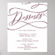 Este pôster de sobremesas de casamento com texto burgundy romântico é perfeito para um casamento simples. O design moderno clássico apresenta espirais sofisticadas e floreios caprichosos com tipografia elegante e manuscrita.