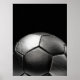A moody, dramatic close-up of a soccer ball lit against a dark background, highlighting the texture and geometry of the leather panels. This striking sports photograph brings a modern, sophisticated edge to any teen bedroom, game room, or sports-themed space. The frame shown is for styling only and is not included.