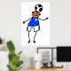 Um desenho animado e cômico de um garotinho brincando com uma bola de futebol e exibindo suas habilidades de bola. Personalize e escolha facilmente a sua própria cor de fundo ou adicione texto. Imagem disponível em vários presentes e produtos.
