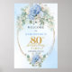 Poster Soft Blue Boho Gold Hydrangeas 80 birthday welcome
