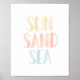 Poster Sol Areia Mar Aquarela Decoração de Berçário de Pr
