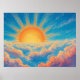 Um trabalho de arte dramático com nuvens pesadas com um meio-sol brilhante brilhando pelo céu. Escadas expressivas e cores ousadas criam um cheio luminoso e emocional de profundidade e atmosfera.