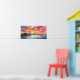 Pintura aquosa de um pôr do sol colorido sobre Miami centro, como visto da Baía de Biscayne com embarcações à vela amarradas nas proximidades.