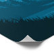 Um poster gráfico ilustrando um pôr do sol entre montanhas e lago: uma paisagem serena com montanhas, árvores, e um corpo calmo de água e o sol refletindo na água. Esta arte de parede será perfeita para decoração de casa ou escritório.