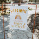 Lua de boas-vindas, luz do sol, arco-íris e estrelas sinal de boas-vindas ao chá de fraldas. Personalizável