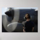 Um soldado monitora o desempenho de um novo motor Hércules C-130, reparado, apresentado com aeronaves.