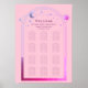 Gráfico Místico Sentado de Casamento Sinal de Casamento Sinal de Casamento Instantâneo Download Digital Imprimível Impressões Poster com Sol, lua e estrelas rosa, cor-de-rosa e púrpura, apresentam um raio de fundo rosa. Dentro, o quadro é o texto "Bem-vindo" em um roteiro elegante de caligrafia rosa e suas informações personalizadas de assentos de casamento. Projetado por ©2022 Evco Studio www.zazzle.com/store/evcostudio