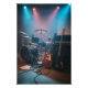 Capture a energia da sua música! Essa imagem vibrante de um estúdio com tambores, amplificador e iluminação dramática é perfeita para inspirar criatividade e adicionar um toque musical ao seu espaço. Ideal para decorar quartos ou áreas de trabalho.