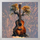 Discover this captivating, surreal acoustic guitar tree artwork featuring autumn foliage and intricate watercolor details. Perfect for music lovers, guitarists, and nature enthusiasts. This unique design blends folk music vibes with botanical beauty, ideal for posters, t-shirts, mugs, and wall art decor.