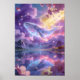 Mergulhe num mundo de maravilha com esta ilustração digital de tirar o fôlego. Apresentando uma majestosa baleia luminosa deslizando por um céu de pôr do sol sonhador, esta peça combina a tranquilidade de um lago de montanha com a beleza efêmera das flores de cerejeira caindo. Com sua paleta vibrante de púrpuras cósmicos, rosas suaves e luz dourada, é o design perfeito para aqueles que encontram magia na natureza e no cosmos.