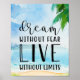 Belo poster apresenta fundo de praia tropical aquarela com uma camada inspiradora de texto. Disponível em formatos de impressão e download digital.