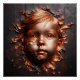 Um retrato abstrato de um jovem impecável embutido em granito de carvão. A face artesanal, esculpida em metal de cobre, assume uma alura 3d. Essa trabalho de arte única e imaginativa captura a pureza e o encanto da inocência infantil com um toque de talento artístico.