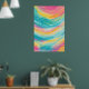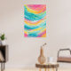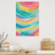 Este vibrante desenho abstrato captura a essência de um paraíso tropical ensolarado pelo sol. Ondas giratórias de turquesa, rosa, amarela e verde criam uma composição dinâmica e em camadas que lembra piscinas coloridas da maré e superfícies cintilantes do oceano. Padrões lúdicos de pontos, ziguezags e formas orgânicas dançam-se pela superfície, evocando as diversas texturas e formas de vida encontradas nos recifes de corais. A morna paleta de cores enérgica traz à mente dias de Verão preguiçosos, férias exóticas, e a beleza mesmerante dos ecossistemas mais coloridos da natureza.