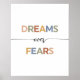 Sonhos Sobre Medos De Arte De Parede Imprimível, Poster De Quarto, Símbolo De Classe De Tipografia Inspiracional, Sala De Reprodução Moderna E Bonita