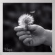 Uma mão gentil segura um dente-de-leão pronto para se espalhar ao vento. Em preto e branco, a imagem captura a pureza de um momento em que um desejo é libertado no desconhecido — simples, frágil e cheio de esperança.
