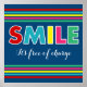 Sorriso colorido, é design de texto gratuito com decoração de listras sobre fundo azul