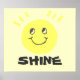 Um rosto amarelo bonito com a palavra brilhando embaixo de preto. Lembrando a você e a todos os outros para deixar sua luz brilhar.