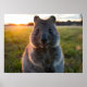 Sorriso Sunset de Quokka: Captura Australiana Incrível da Fauna. Capture o momento encantador de uma fofa sorrindo diretamente na câmera quando o sol se põe.