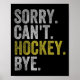 Poster Sorry Can't Hockey Bye Funny Hockey