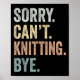 Poster Sorry Can't Knitting Bye Funny Knitting Lovers