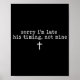 Poster Sorry I'm Late His Timing Not Mine Shirt