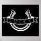 Um estilo preto e branco, estêncil, sapato vetorial de cavalo. O design do templo equestre tem uma faixa que lê sorte.