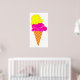Ilustração deliciosamente saborosa de um cone de sorvete com duas colheres de sabor diferentes no topo. Imagem disponível em vários presentes e produtos. Personalize e altere a cor de fundo ou adicione texto conforme necessário.