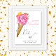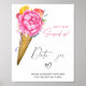 Este chá de panela temático é decorado com florais de aquarela e um cone de sorvete. O texto diz: "Ela foi enfiada!" na tipografia de script rosa-na moda.