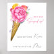 Este chá de panela temático é decorado com florais de aquarela e um cone de sorvete. O texto diz: "Ela foi enfiada!" na tipografia de script rosa-na moda. Sorvete de aquarelas com flores e frutas.