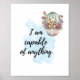 Um filhote adorável num balão de ar rodeado por flores espalhando positividade com este poster de afirmação "Eu sou capaz de qualquer coisa". Excelente para o quarto do seu filho, sala de jogos ou onde quer que passem o dia.