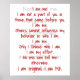 Sou eu que não faço parte de você ou daqueles que vieram antes de você. Eu sou eu Outros não podem influenciar meu comportamento ou quem eu sou. Sou eu. Só escolho quem sou. Sou meu esforço. Ninguém pode me dizer o contrário. Eu sou original. Sou eu.