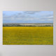 "South Dakota Sunflower Fazenda, Painterly", por Catherine Sherman. Dezenas de milhares de girassóis estão floridos numa fazenda de Dakota do Sul. Nos campos além estão fardos de feno.