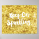 "Keep On Sparkling" quote on a sparkling gold bokeh glittery blurry background.