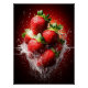Uma ilustração digital de um quadro congelante de vários morangos a cair e a salpicar em água.