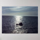 Um sol de manhã cedo lança um reflexo através do Módulo de Comando do Skylab 4 no Oceano Pacífico cerca de 176 milhas a sudoeste de San Diego, Califórnia, após a explosão às 8:17 da manhã, 8 de fevereiro de 1974. Nadadores dos Estados Unidos, Nova Orleans, principal navio de recuperação, estão participando de operações de recuperação, aqui.