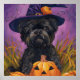 Poster Spooky Affenpinscher Halloween Witch e Pumpkin