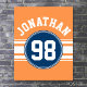 Poster Sports Jersey Blue e Orange Strips Número de Nome