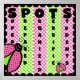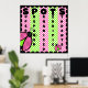 Poster com bolinhas de branco sobre limão e cor-de-rosa, belos joelhos rosados e aspas com as letras SPOTS.