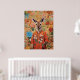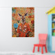 Esta bela imagem mostra um canguru vestindo uma camisa colorida, e cercado por flores. Esta interessante trabalho de arte antropomórfica ficaria bonita em qualquer cômodo da casa.