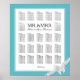 Selecione a cor de fundo e a cor do texto deste gráfico de assentos de design de arco branco com espaço para 22 mesas. Adicione nomes e alinhe-os conforme necessário. O poster está completamente impresso, não há nenhum arco ou fita real conectado.